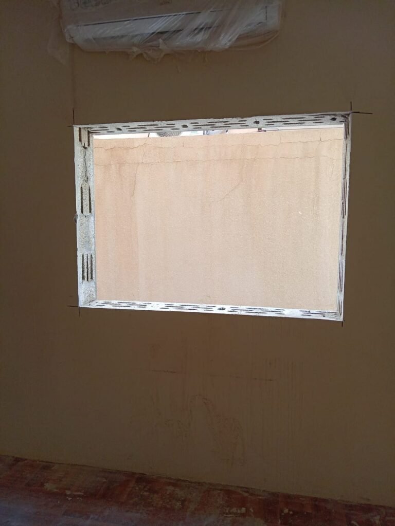 قص الجدران لعمل فتحات شبابيك بمقاسات دقيقة، مع حماية الواجهات والتشطيبات لتكون جاهزة للتركيب مباشرة.