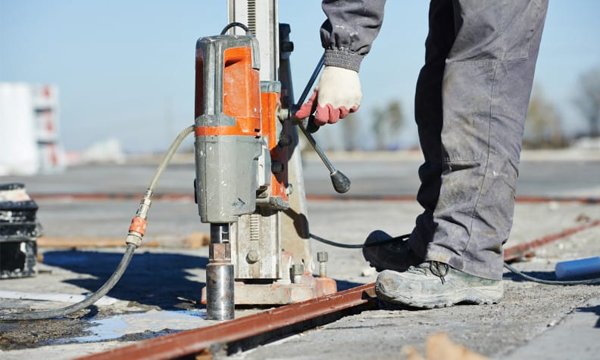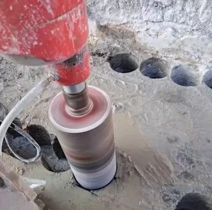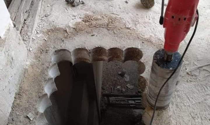تخريم الخرسانة (كور درل) لتمديد السباكة والكهرباء والتكييف بأقطار مختلفة، مع حواف نظيفة ودقة عالية.
