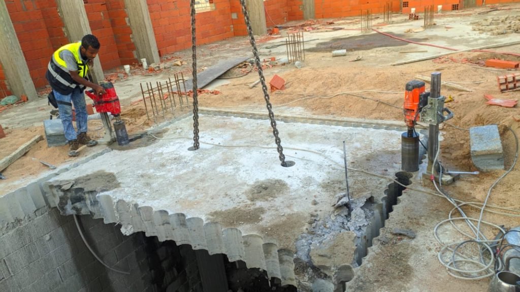 🔧 قص الجدران بالماسة بالرياض: قص الخرسانة لفتح الأبواب والنوافذ بدقة عالية.